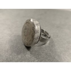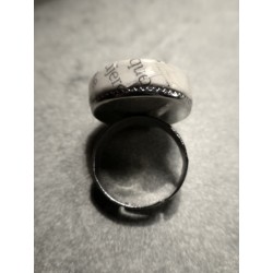 Exclusivo anillo, de este modelo no se ha fabricado mas que una unidad, ecológico realizado con papel de periódico reciclado y barniz ecológico al agua. En tonos blancos y base del anillo extensible, libre de plomo y níquel.