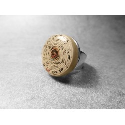 Exclusivo anillo, de este modelo no se ha fabricado mas que una unidad, ecológico realizado con papel de periódico reciclado y barniz ecológico al agua. En tonos blancos y base del anillo extensible, libre de plomo y níquel.