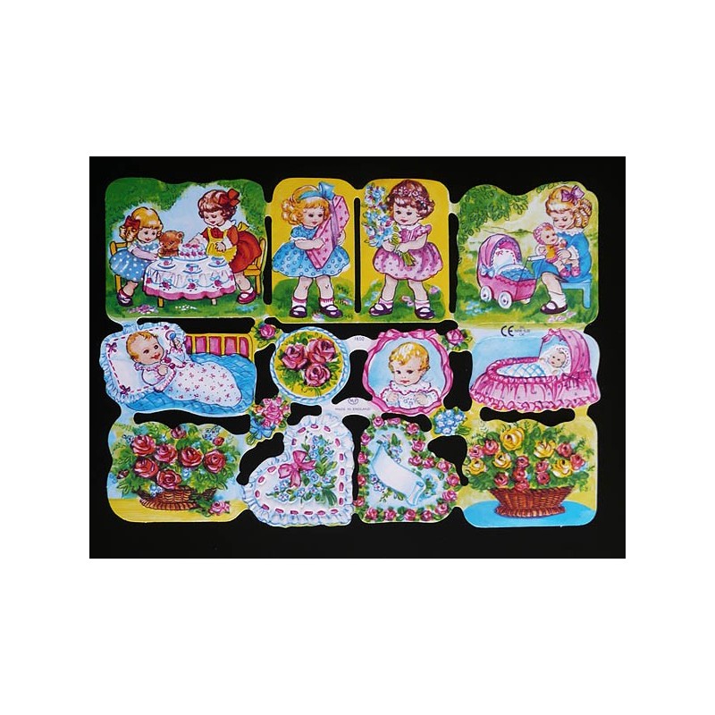 Lámina de cromos troquelados ingleses MLP 1650 · Niñas, Bebés y Flores ·