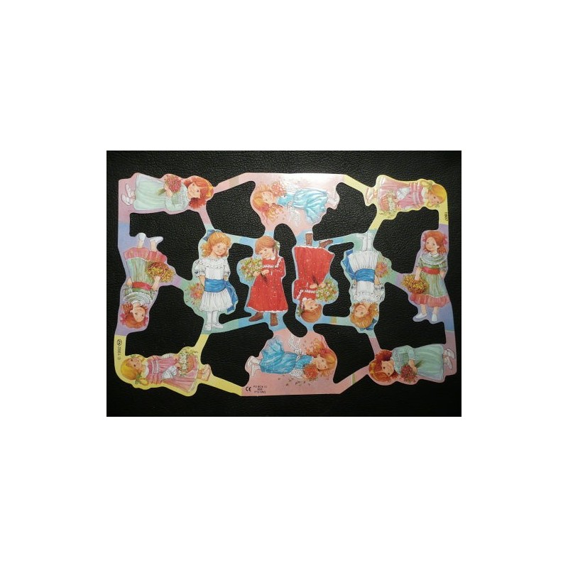 Lámina de cromos troquelados ingleses MLP 1807 · Niñas con Flores ·