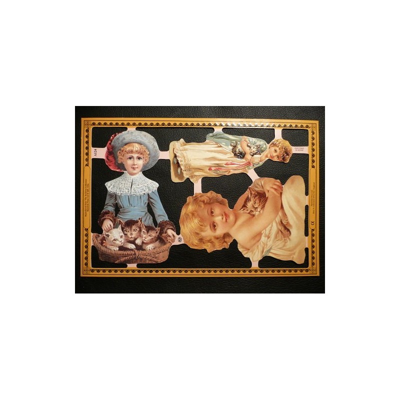 Lámina de cromos troquelados ingleses MLP A 124 · Niñas con Gatitos ·