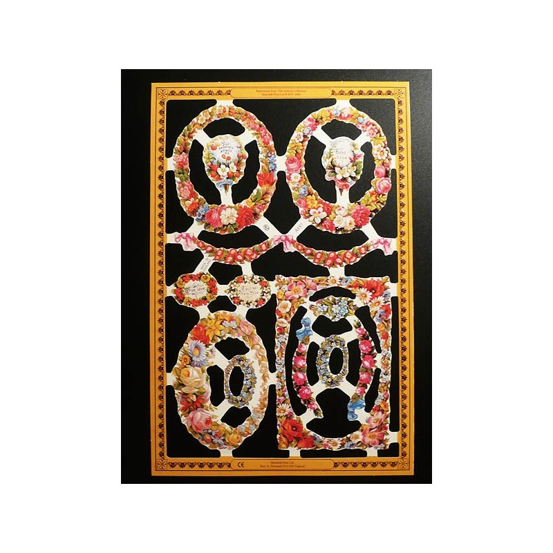 Lámina de cromos troquelados ingleses MLP A 157 · Orlas con Flores ·