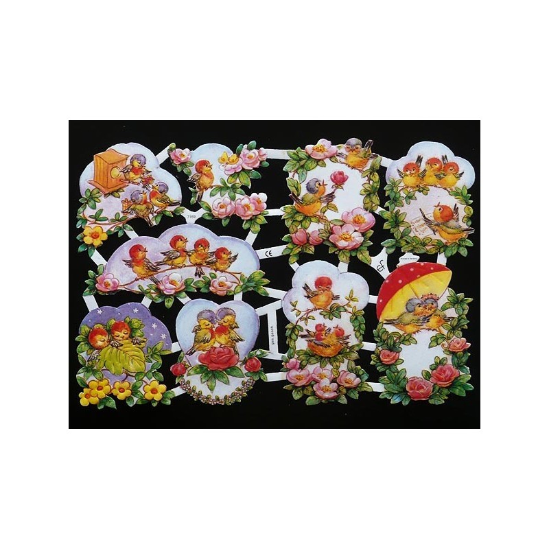 Lámina de cromos troquelados alemanes EF 7169 · Pajarillos ·
