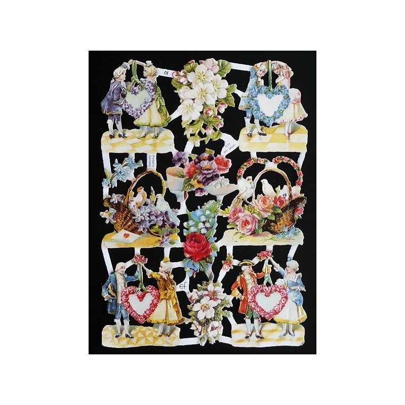 Lámina de cromos troquelados alemanes EF 7177 · Parejas y Flores ·