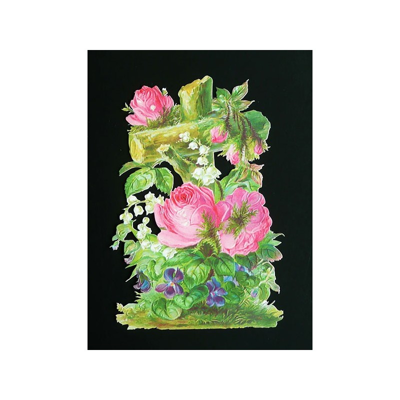 Cromo troquelado gigante y gran grosor alemán de 16 cm. EF BK 5069 · Flores y Cruz ·