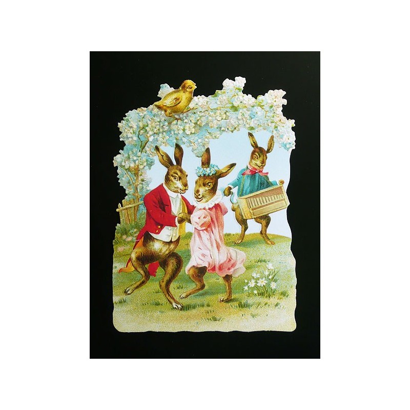 Cromo troquelado gigante y gran grosor alemán de 16 cm. EF BK 5110 · Conejitos Bailando ·