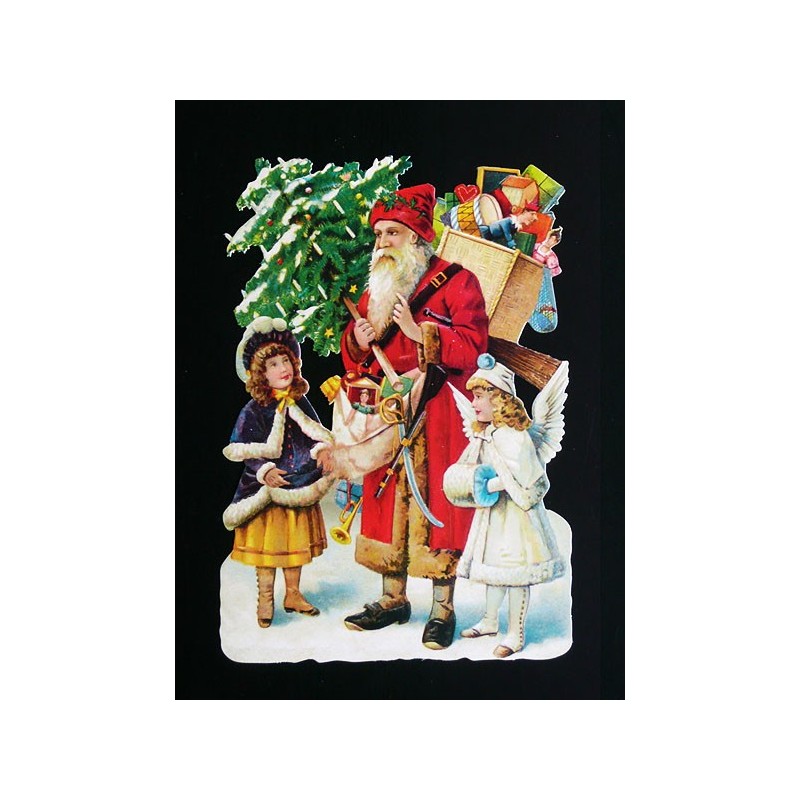 Cromo troquelado gigante y gran grosor alemán de 16 cm. EF BK 5155 · Papá Noel con Regalos ·