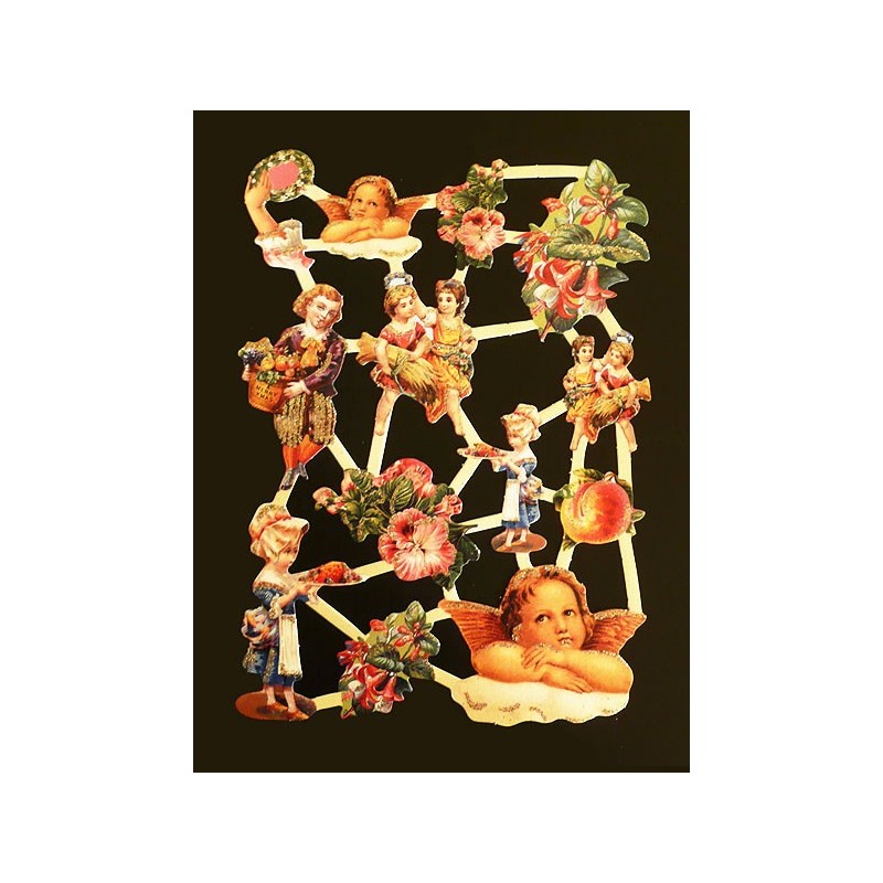 Lámina de cromos troquelados holandeses con brillo y purpurina n. 2 · QUERUBINES Y NIÑOS ·