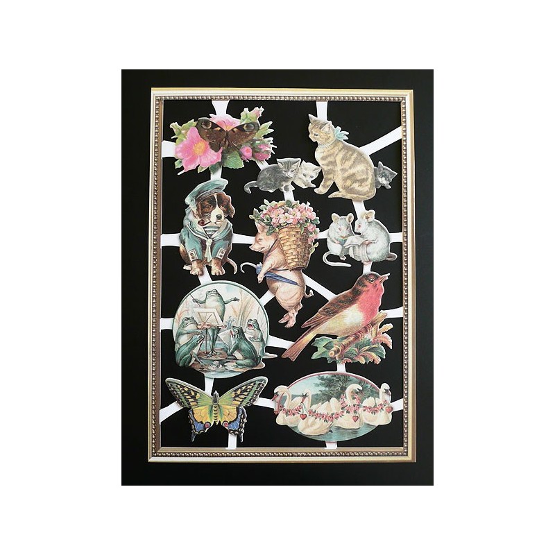 Rara lámina adhesiva con cromos troquelados, de palmar o de picar holandeses con brillo, relieve y purpurina brillantina. Ideal para coleccionistas o para decorar tus manualidades, scrapbooking o decoupage.