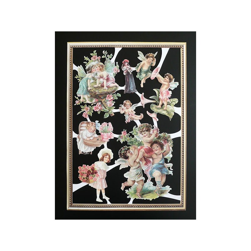 Rara lámina adhesiva con cromos troquelados, de palmar o de picar holandeses con brillo, relieve y purpurina brillantina. Ideal para coleccionistas o para decorar tus manualidades, scrapbooking o decoupage.