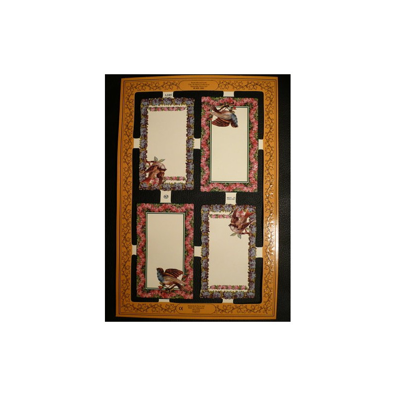 Lámina de cromos troquelados ingleses MLP A 105 · Notas con flores y aves ·