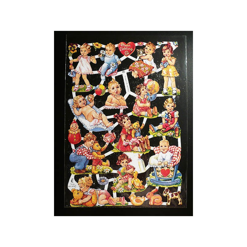 Lámina de cromos troquelados alemanes EF 7018 · Bebés · Purpurina – Brillantina !