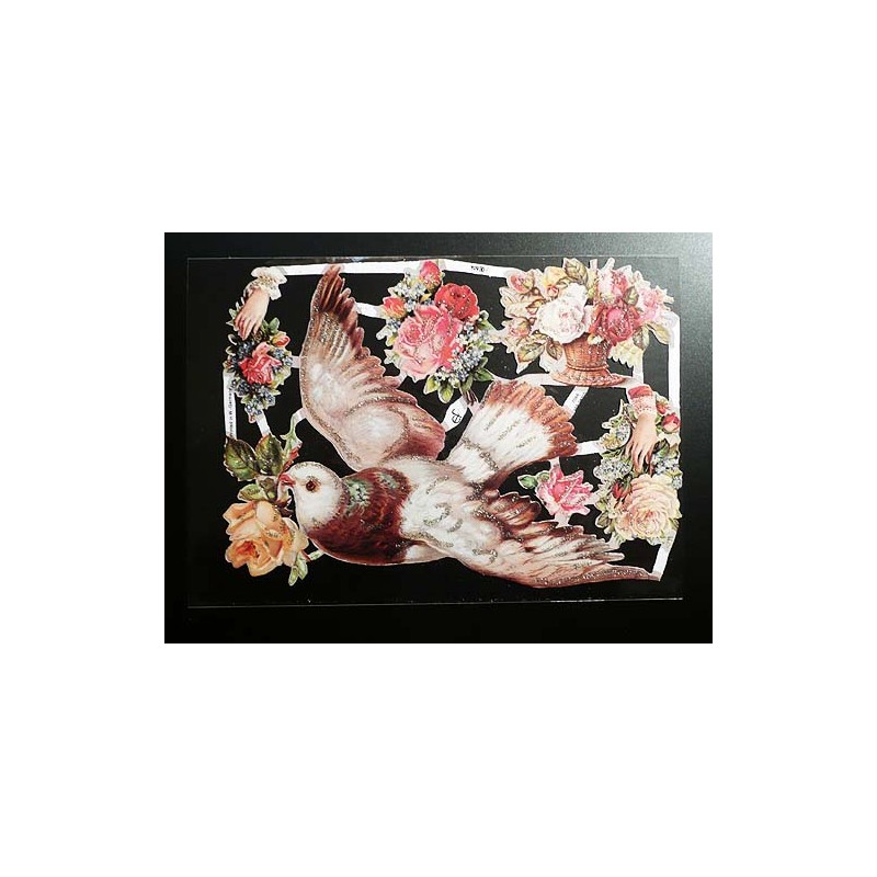 Lámina de cromos troquelados alemanes EF 7066 · Paloma y Flores · Purpurina – Brillantina !