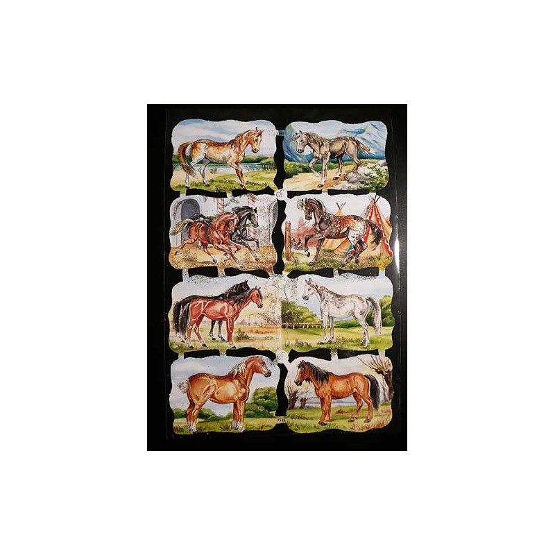 Lámina de cromos troquelados alemanes EF 7149 · Caballos · Purpurina – Brillantina !