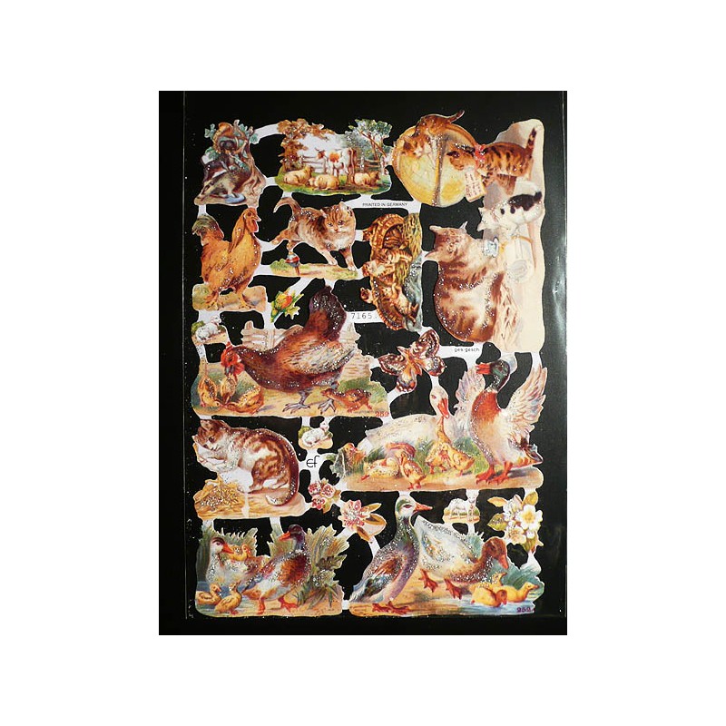 Lámina de cromos troquelados alemanes EF 7165 · Animales de Granja · Purpurina – Brillantina !