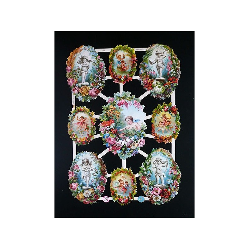 Lámina de cromos troquelados alemanes EF 7364 · Querubines y Flores ·
