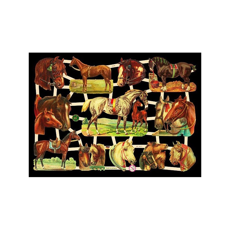 Lámina de cromos troquelados alemanes EF 7378 · Caballos ·