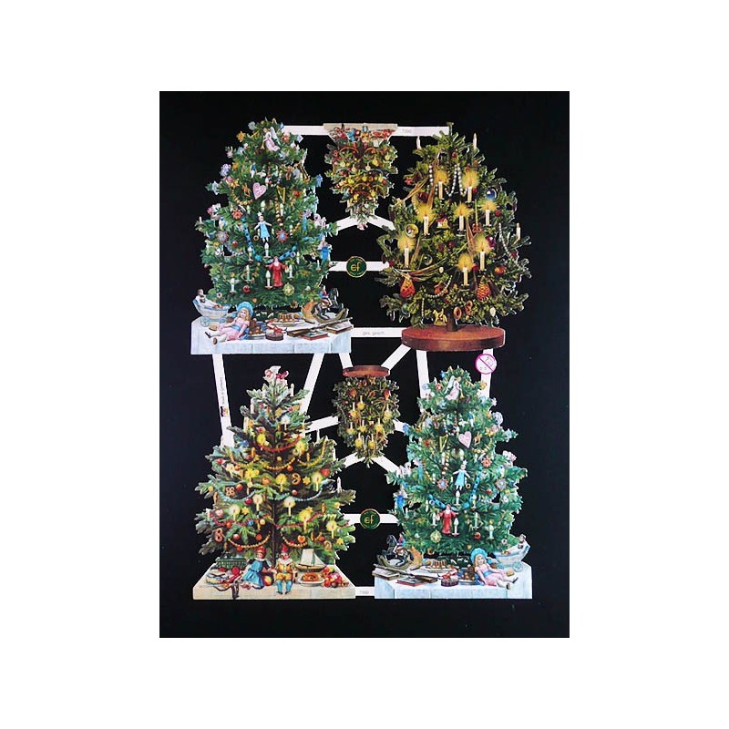 Lámina de cromos troquelados alemanes EF 7390 · Arboles de Navidad ·