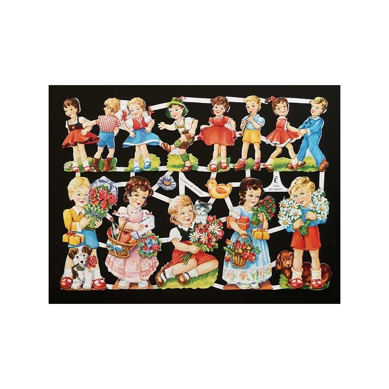 Lámina de cromos troquelados alemanes EF 7030 · Niños y Flores ·