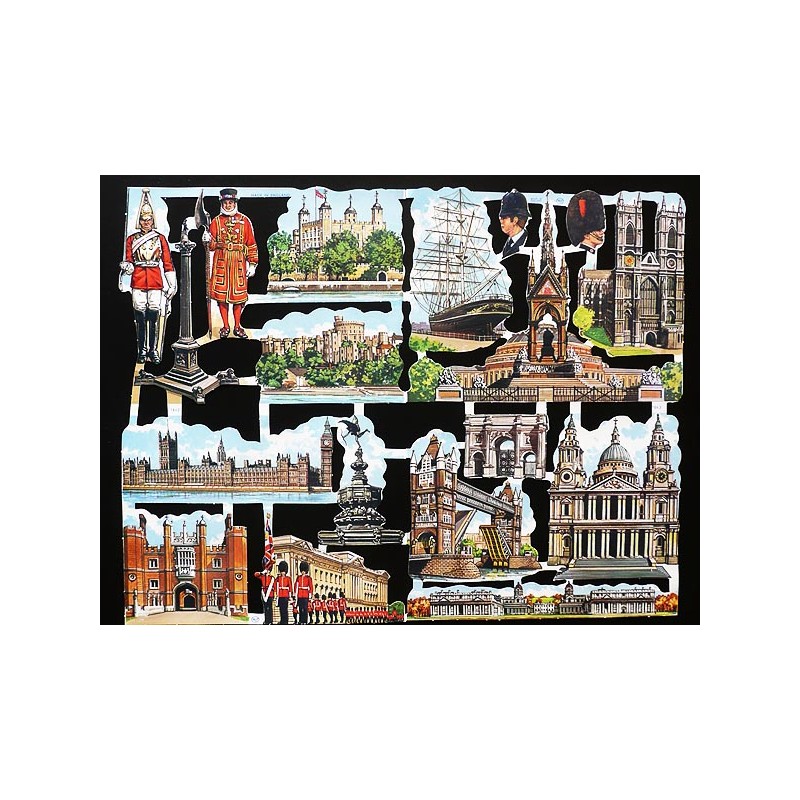 Lámina GIGANTE de cromos troquelados ingleses MLP 1642 y 1643 · Edificios emblemáticos ingleses ·
