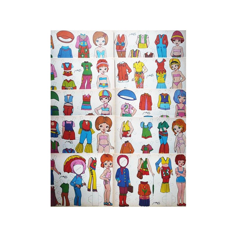 Serie completa de 10 láminas españolas de muñecas recortables Maves. 1982. Edit. Loroño. Serie B. Nº. 1 al 10. Paper dolls.