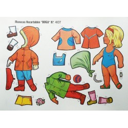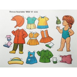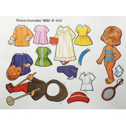 Serie completa compuesta por 10 antiguas láminas grandes, diferentes y originales con muñecas recortables impresas en España en los años 70. Tamaño 24 x 34 cm.