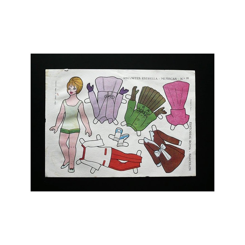 1 antigua lámina con muñeca recortable española. Recortables estrella. Nº 31, Editorial Roma. Año 1963.