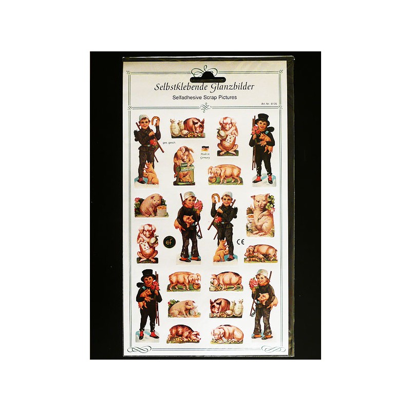 Lámina de cromos adhesivos troquelados · Niños y Cerditos ·