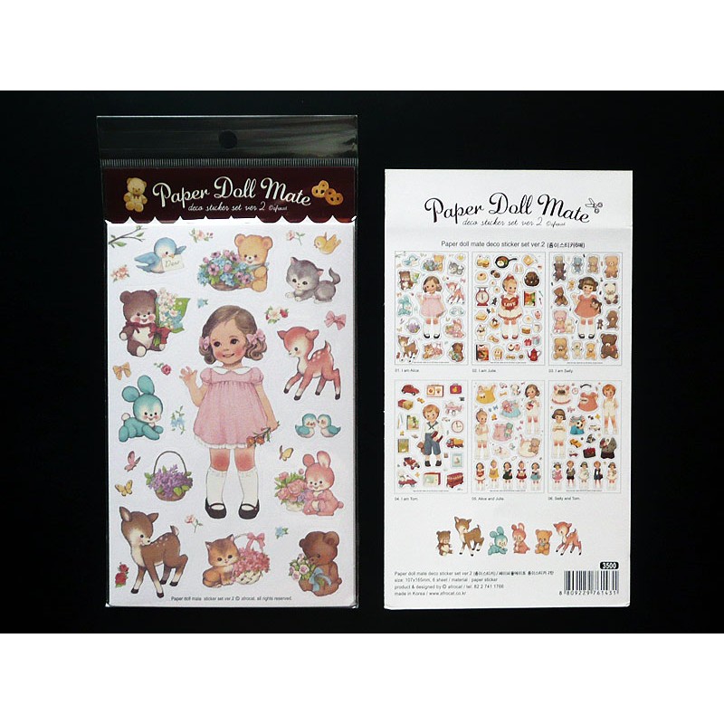 Encantador set con 6 laminas paper dolls retro adhesivas. Figuras troqueladas. Tam. 16,5 x 11 cm.