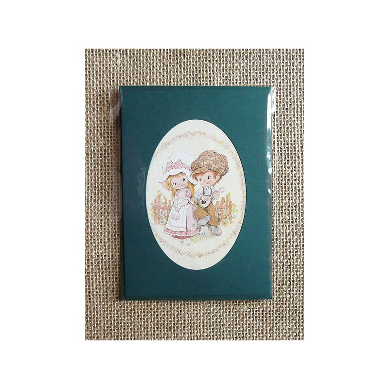 El set está compuesto por un sobre de papel, una cartulina base de dos hojas con forma troquelada en su parte frontal, una hoja suelta de papel verjurado en el mismo tono que el resto y una preciosa lámina ilustrada sin pegar, así tu puedes elegir tu propia composición postal, decidir donde ubicar tu imagen y en caso necesario el texto que se requiera.