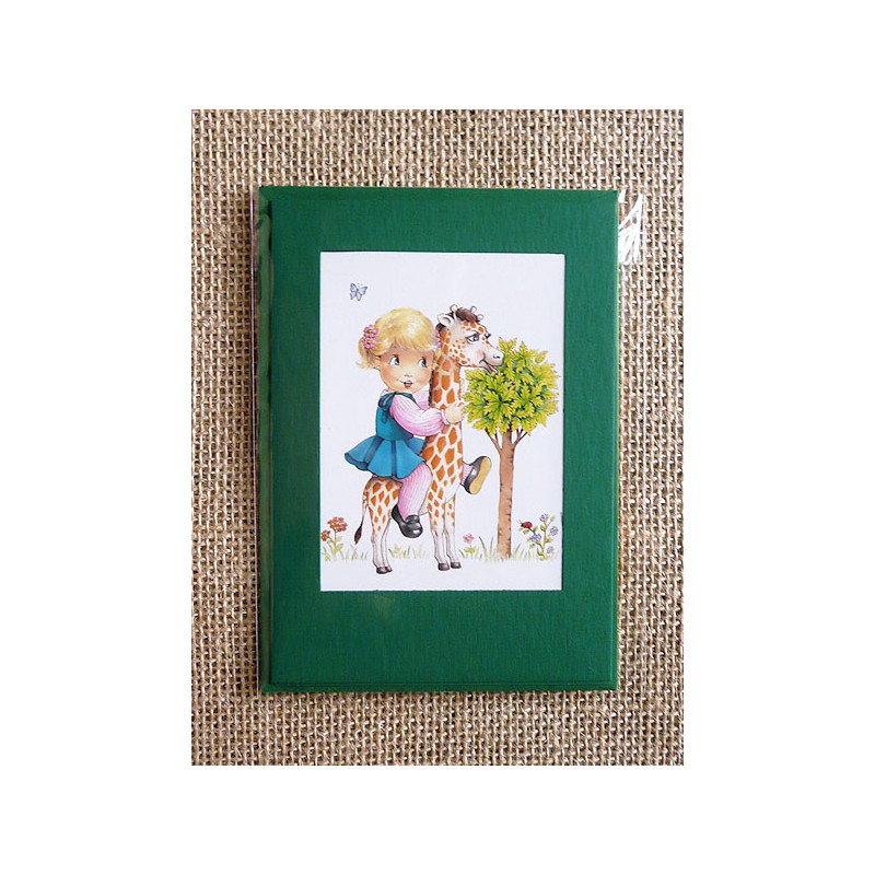 El set está compuesto por un sobre de papel, una cartulina base de dos hojas con forma troquelada en su parte frontal, una hoja suelta de papel verjurado en el mismo tono que el resto y una preciosa lámina ilustrada sin pegar, así tu puedes elegir tu propia composición postal, decidir donde ubicar tu imagen y en caso necesario el texto que se requiera.