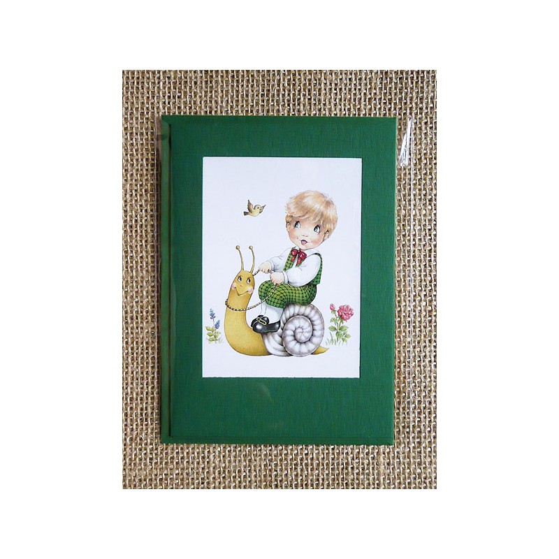El set está compuesto por un sobre de papel, una cartulina base de dos hojas con forma troquelada en su parte frontal, una hoja suelta de papel verjurado en el mismo tono que el resto y una preciosa lámina ilustrada sin pegar, así tu puedes elegir tu propia composición postal, decidir donde ubicar tu imagen y en caso necesario el texto que se requiera.